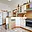 V kuchyňské lince jsou zabudovány vestavěné spotřebiče (digestoř, plynová varná deska, elektrická trouba, myčka) plus samostatně stojící lednice s mrazničkou).